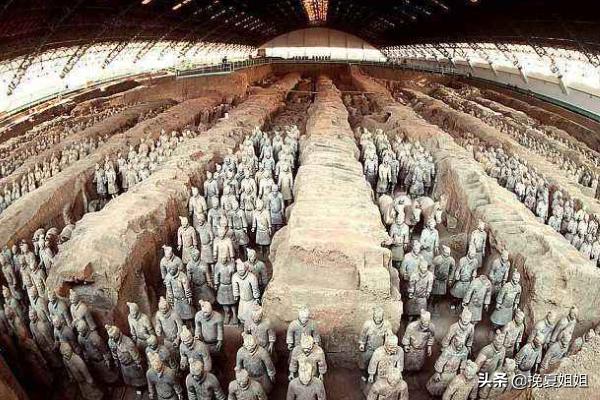 秦始皇陵建于公元前246年至公元前208年,现存墓封土高40米。陵园布局仿秦都咸阳,分内外两城,内城周长约2.5公里,外城周长约6.3公里。兵马俑坑位于秦始皇陵东侧,是秦陵的大型陪葬坑,1974年被发现。现已挖掘四个坑,面积共2.5万余平方米。能内丛葬大量与真人真马等同大小的陶制彩绘兵马俑和当时实战使用的各种兵器。出土文物达万件之多。